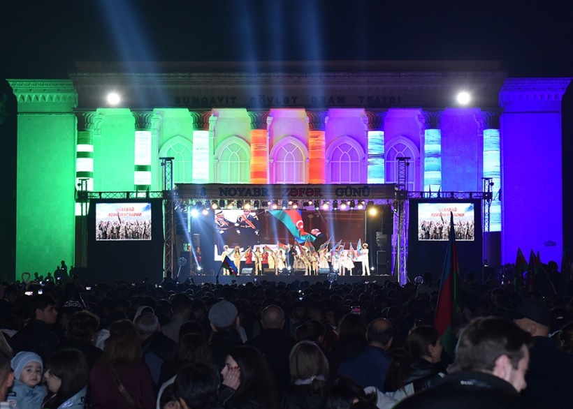 Açıq havada təşkil olunan konsertdə Sumqayıt şəhər İcra Hakimiyyətinin başçısı Zakir Fərəcov, hüquq-mühafizə orqanlarının rəhbərləri, şəhid ailələri, qazilər və minlərlə şəhər sakini iştirak edib.