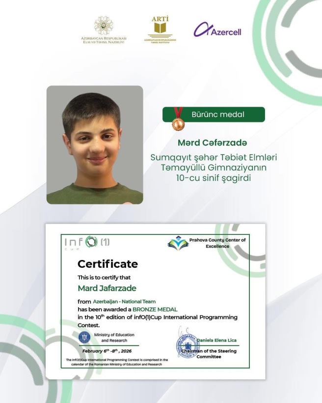 Gənc istedadların üzə çıxarılması və gələcək texnoloji liderlərin yetişdirilməsi məqsədi daşıyan bu uğurlu başlanğıcın ardınca, 10–14 yanvar tarixlərində Qazaxıstanın paytaxtı Astana şəhərində təşkil olunan XXII Beynəlxalq Jautikov Olimpiadasında (IZHO) Azərbaycanı təmsil edən komandanın tərkibində riyaziyyat fənni üzrə gimnaziyanın XI sinif şagirdi Davud Tarverdili dünya səviyyəli rəqibləri ilə mübarizədə bürünc medal qazanaraq məktəbin beynəlxalq nüfuzunu daha da yüksəldib.