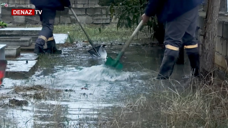 Bir qədər sonra əraziyə canlı qüvvə və xüsusi texnika cəlb olunaraq suyun çəkilməsi işlərinə başlanıldı.Görülən tədbirlər nəticəsində suyun səviyyəsinin tədricən azalması müşahidə edildi.Bələdiyyə sədrinin sözlərinə görə, ərazidən su tam kənarlaşdırılanadək işlər davam etdiriləcək və gələcəkdə bu cür halların təkrarlanmaması üçün yaxın günlərdə problemin həlli yolları müzakirə olunacaq. Əraziyə saatlarla axaraq məzarlığı basan suyun haradan və necə gəldiyi isə hələlik sual olaraq qalır.Ümid edək ki, oxşar mənzərə təkrarlanmadan problem kökündən həll olar.